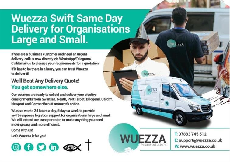 If you need an urgent delivery, call us now! If it has to be there in a hurry, you can trust Wuezza to deliver it! Our uniformed, security-checked couriers are ready to collect your urgent consignments from Swansea, Cardiff, Newport, Bristol and Carmarthen at a moment’s notice.